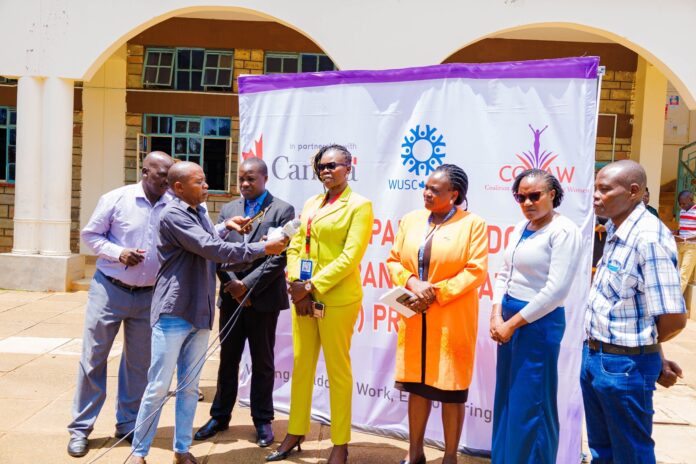 During a county level town hall meeting convened by the Coalition on Violence against Women (COVAW) in partnership with World University Service of Canada (WUSC) under the Action for Paid Childcare Sector Transformation (ACT) project.
